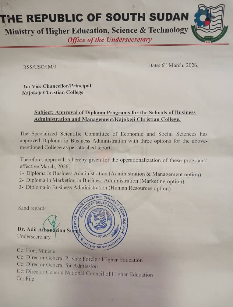 Greetings. I am overjoyed to welcome you to Kajo-Keji Christian College (KCC) and I wish to convey the passion and enthusiasm that both staff and students bring to all that they do here, making this College a wonderful place to learn.